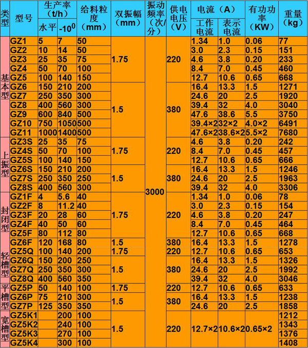 7、不適用于具有防爆要求的場合。 結(jié)構(gòu):電磁振動(dòng)給料機(jī)由料槽、電磁振動(dòng)器、減振器、控制箱幾部分組成技術(shù)參數(shù)見下表